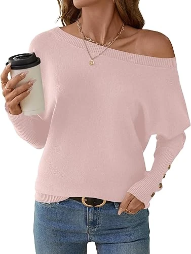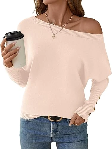 【Design】: Stylish yet simple design, featuring wide batwing sleeves and a specially tailored shoulder width. You can choose to wear it off-the-shoulder or with a boat neck. Knit details at the neckline, sleeves, and hem add a touch of sophistication, while buttons at the cuffs lend a fashion.